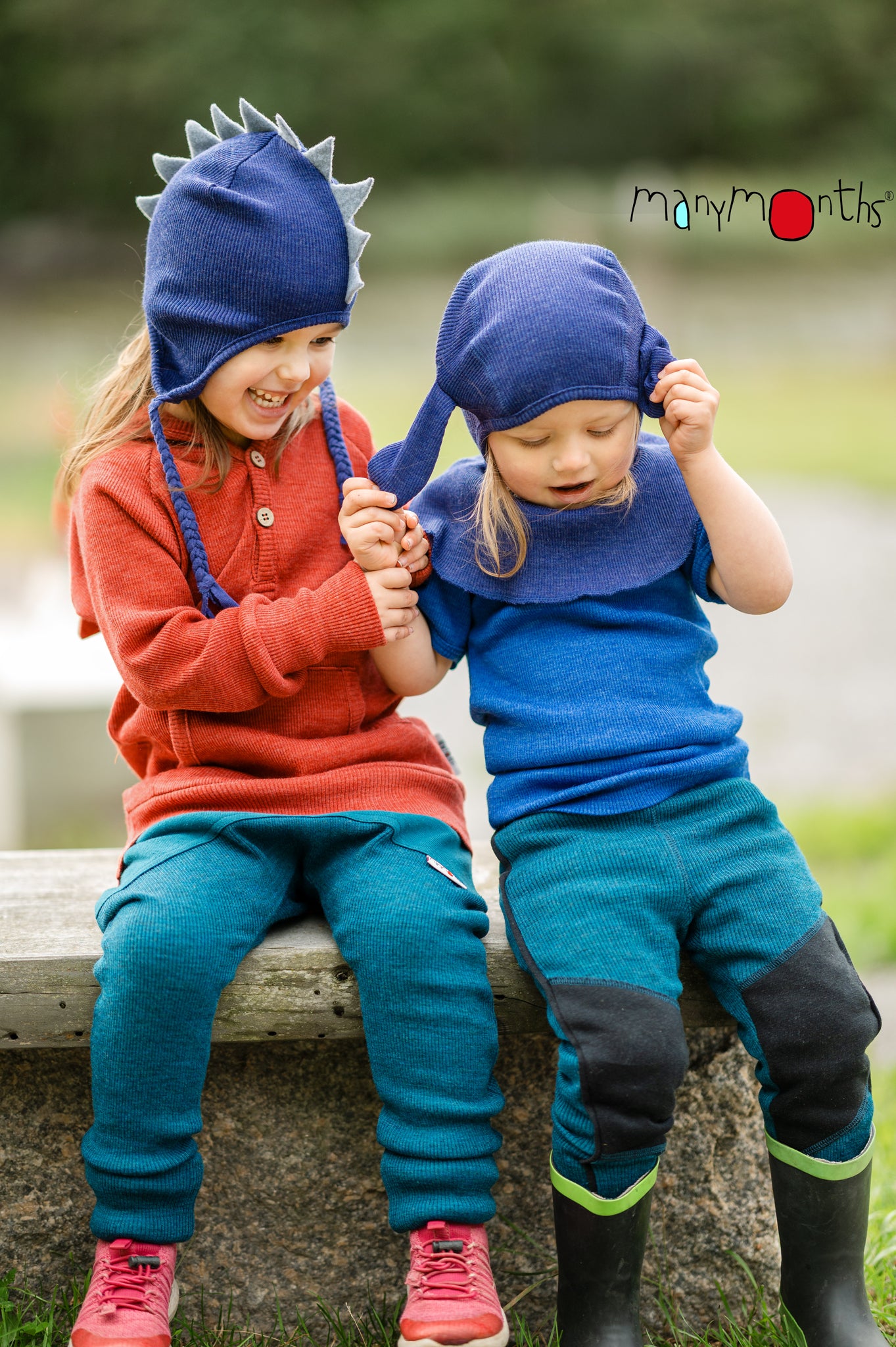 Bonnet Dino Manymonths en laine mérinos évolutif - Dino earflap beanie