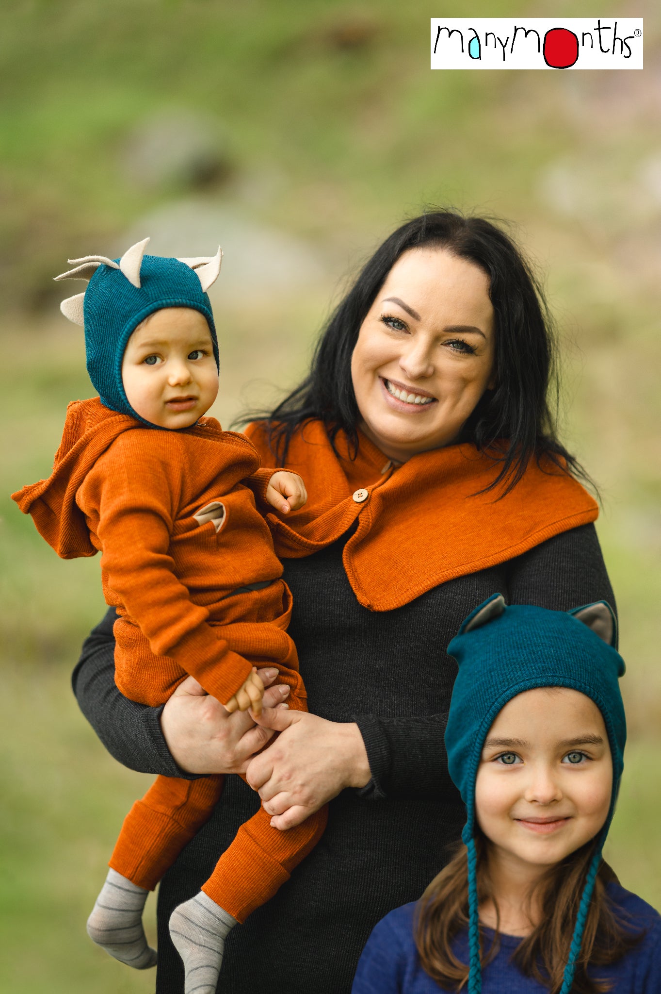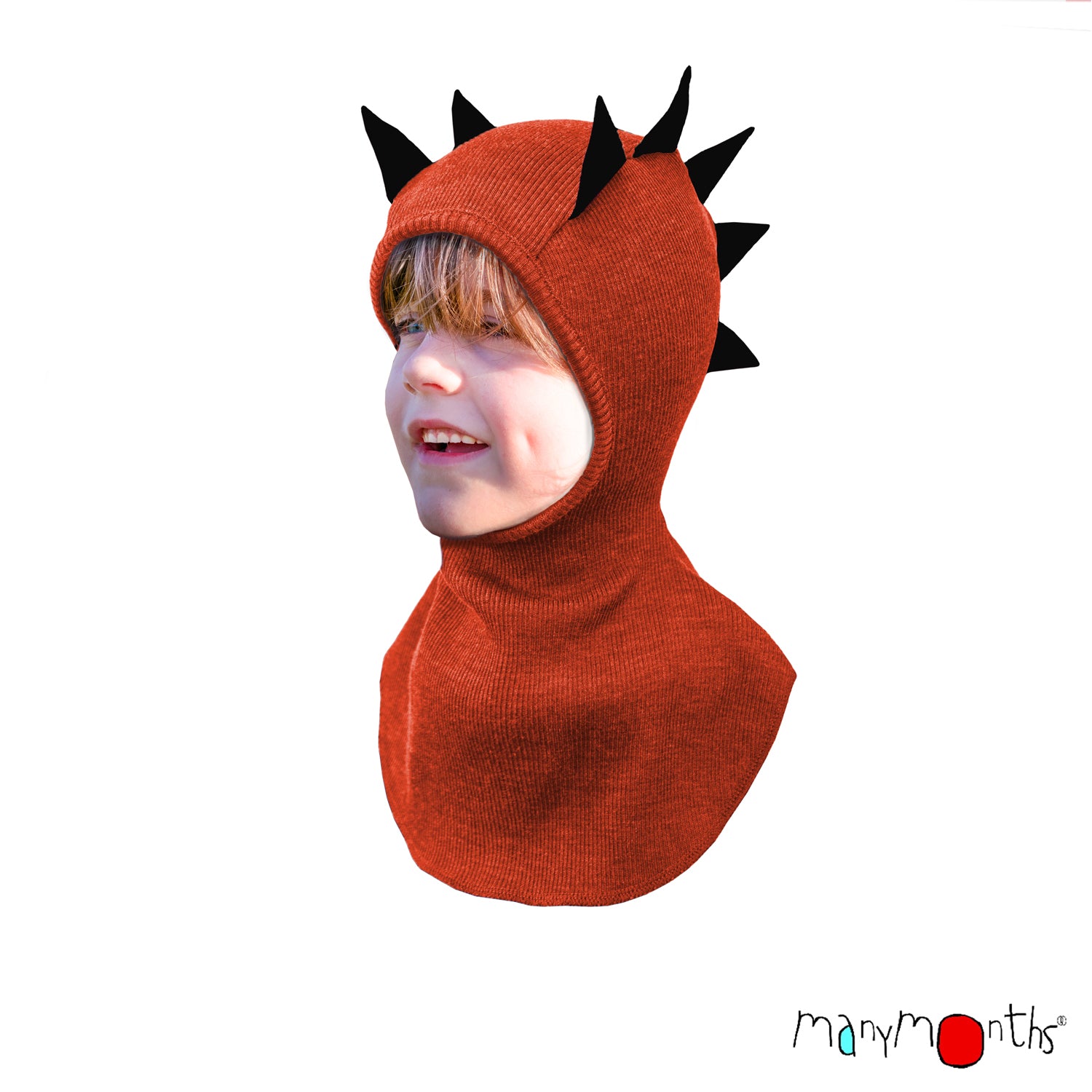 Cagoule en laine mérinos ManyMonths collection « DINO« , avec des écailles de dinosaure : apporte au quotidien une touche d’originalité et de fun à la tenue de votre enfant qu’il soit petit ou grand. Son côté rigolo peut aussi vaincre les réticences de certains enfants à porter une cagoule !