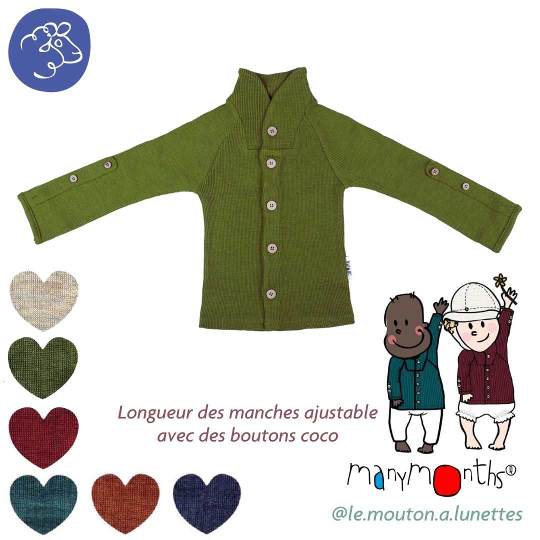 Gilet évolutif en laine mérinos thermorégulatrice. Un vêtement de la marque manymonths qui garantit le bien-être de votre enfant en toutes saisons et évite de nombreuses lessives.