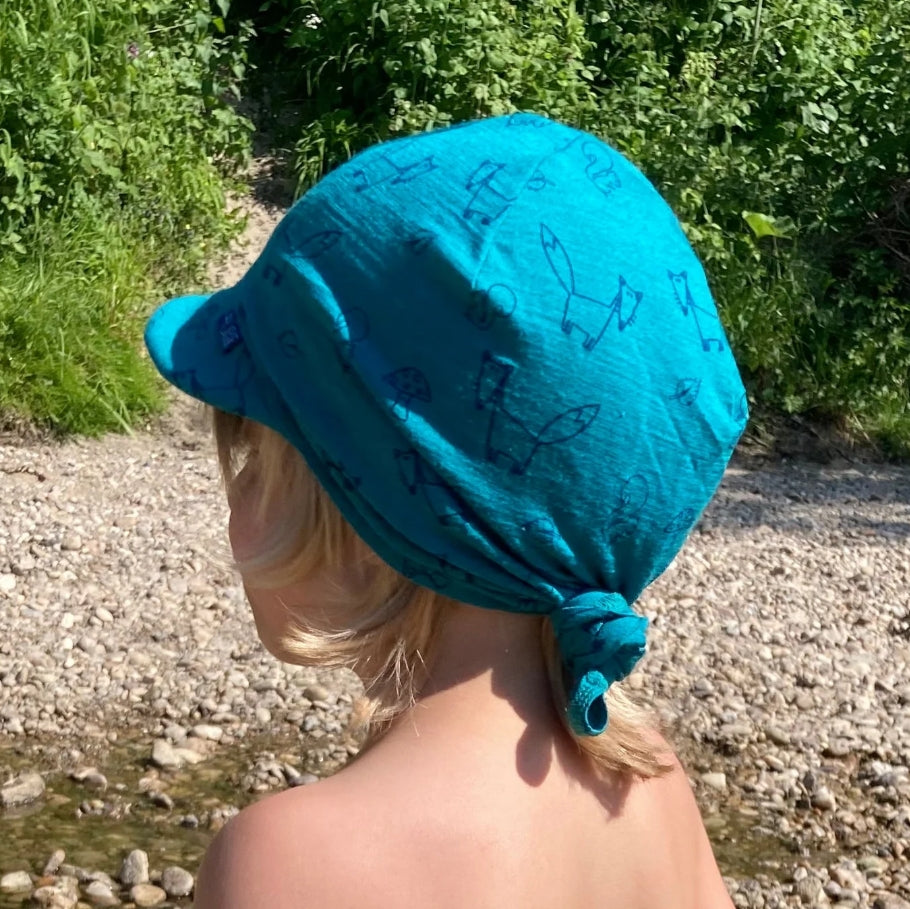 Une casquette légère et respirante pour protéger la peau délicate de bébé : protection naturelle contre le soleil et confort absolu ! Voilà un accessoire original, hybride entre une casquette, un chapeau et un bonnet léger en laine et soie.