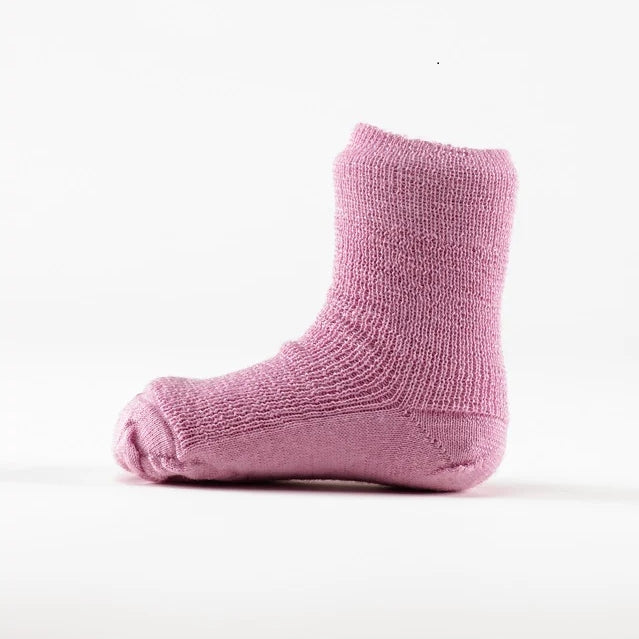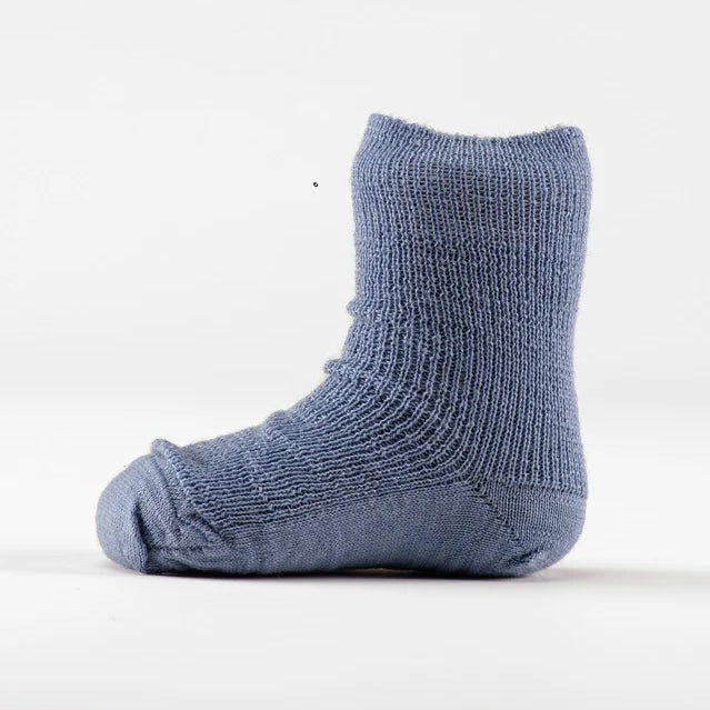 Des chaussettes en pure laine vierge biopour bébé et enfant, mi-hautes, thermorégulatrices mais plutôt fines, pour garder les pieds de votre enfant au sec sans sur-épaisseur dans les chaussures. De la marque allemande Hirsch Natur.