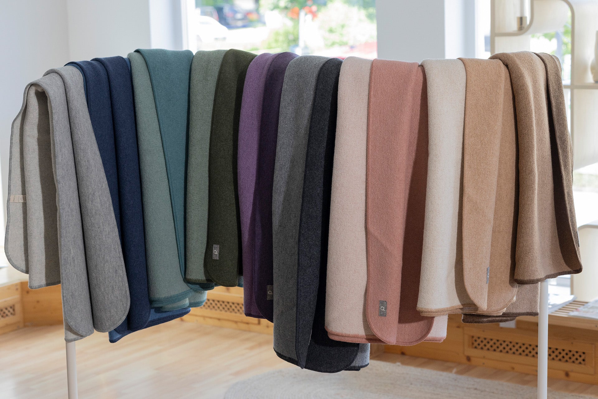 - La couverture classique en laine bouillie bio : disponibles en 2 tailles (200 x 135 cm et 100 x 135 cm) et 10 couleurs, avec un grammage de 420 g/m² qui la rend utile en toute saison et dans toutes les pièces de la maison ou pour se réchauffer le soir en terrasse