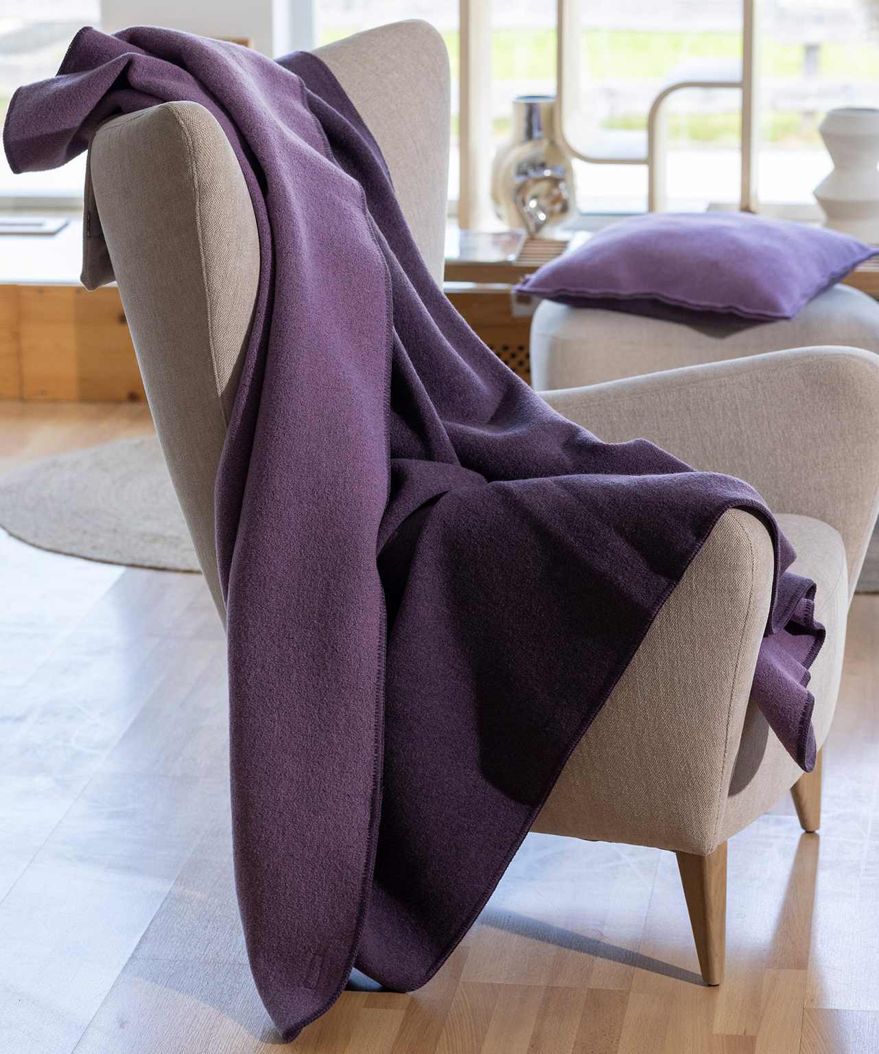 Couverture double-face DISANA pour la maison en laine bouillie. Laine mérinos bio qualité 650 g/m²