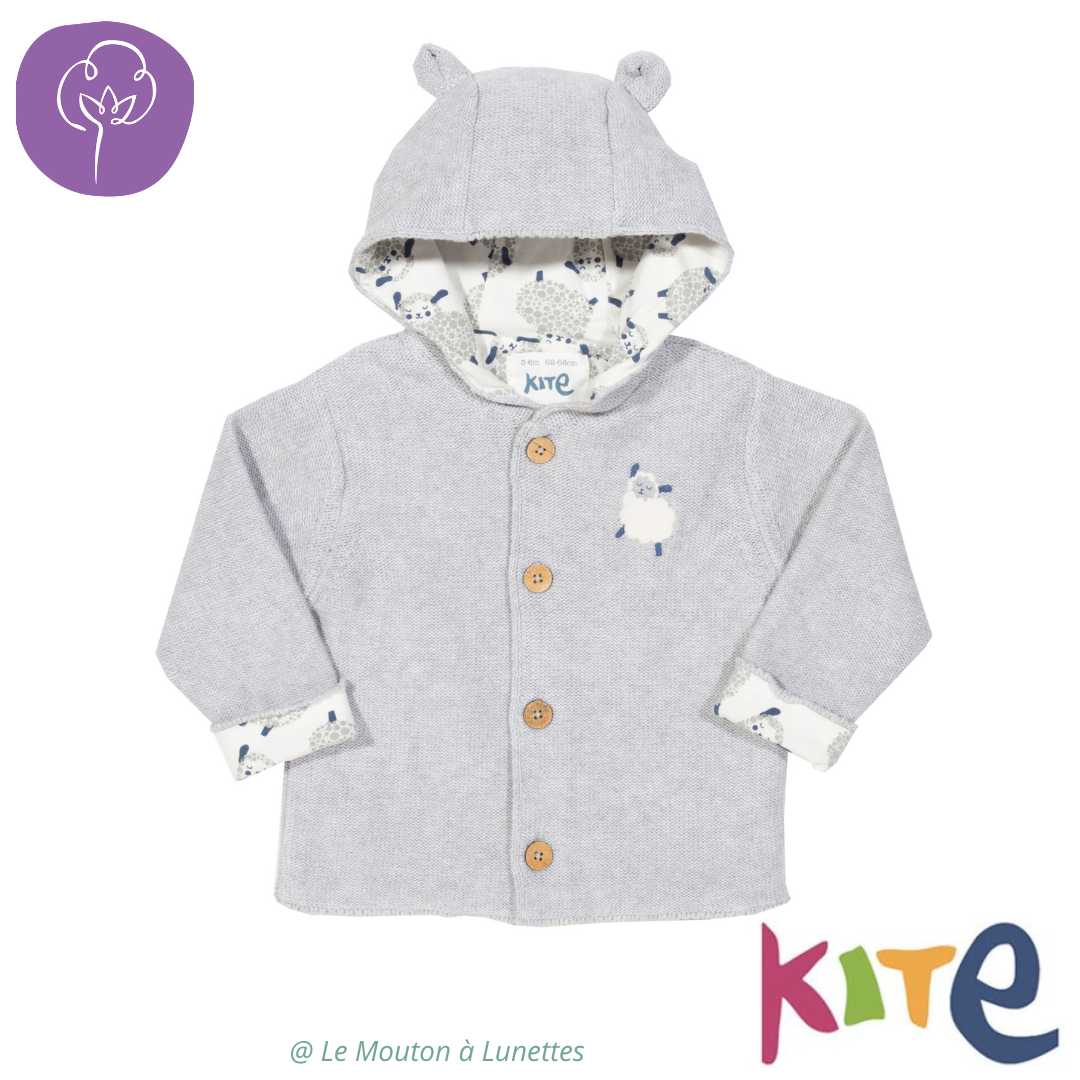 Gilet bébé coton bio avec capuche à oreilles et motif mouton - Kite clothing
