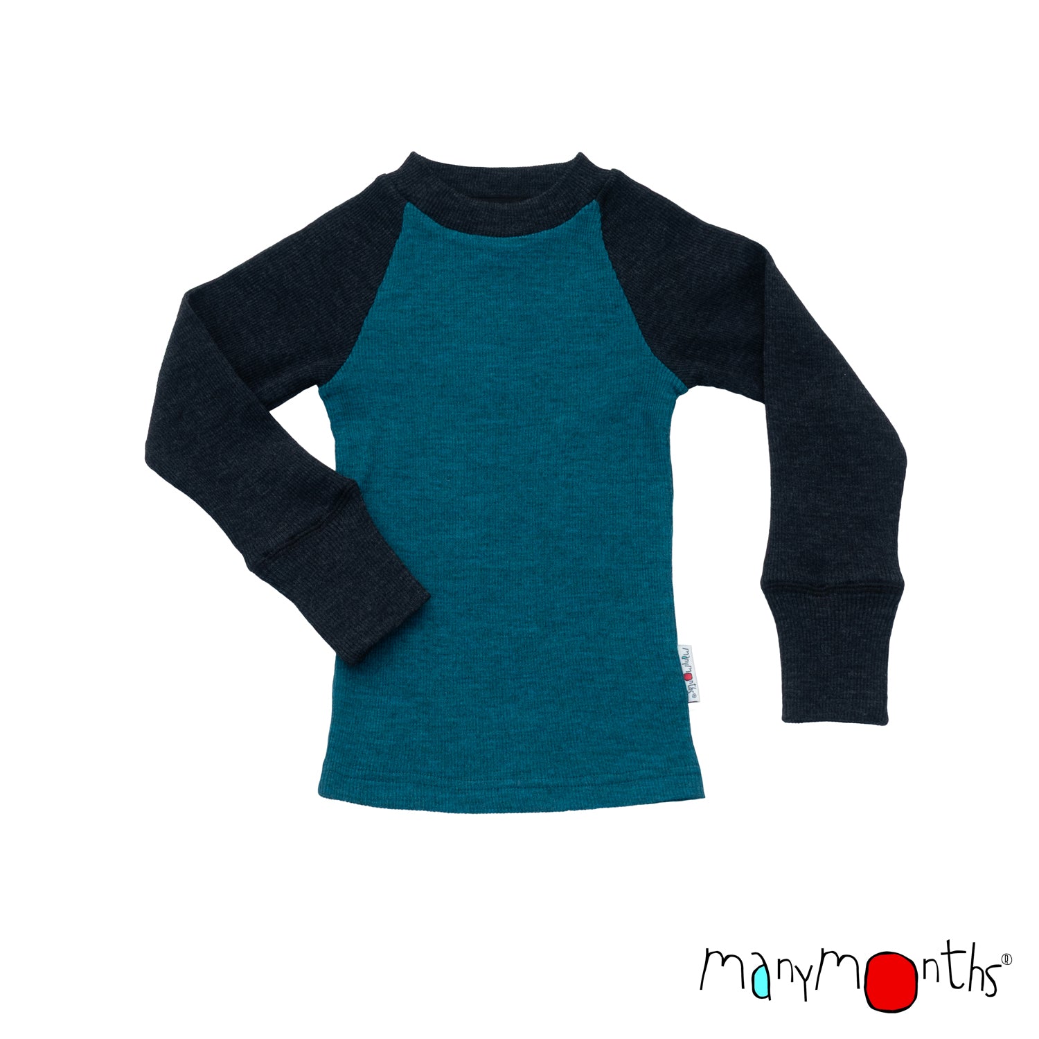La laine mérinos est bien connue des sportifs depuis longtemps et pour les enfants c'est tout aussi agréable. J'utilise des vêtements mérinos pour les activités sportives de mes enfants depuis leur plus jeune âge : rando, vélo, ski, skating etc... et en voyage itinérant. Les avantages sont tels qu'on ne revient pas en arrive après y avoir goûté ! Toute la gamme des basiques ManyMonths se prêtent très bien à un usage sportif. Ce haut manches longues a des manches raglan qui permettent une grande mobilité, et leur look sportif bicolore est très sympa, à associer au bas assorti : l'ensemble fera une sous-couche thermique parfaite pour les activités outdoor par temps froid ou pluvieux !