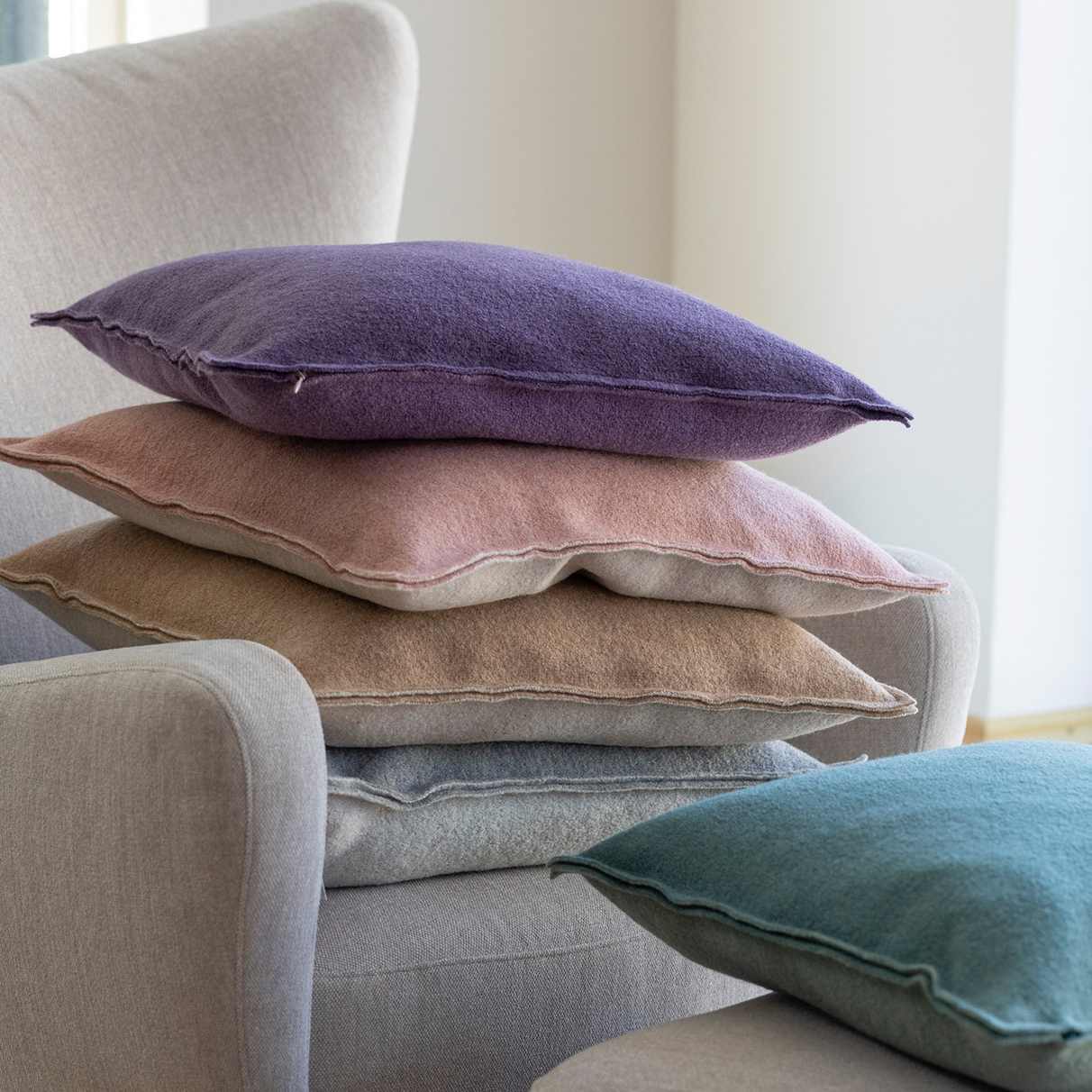 Coussin DISANA Living pour la maison : housse de coussin bicolore en laine bouillie. Laine mérinos bio qualité 650 g/m²