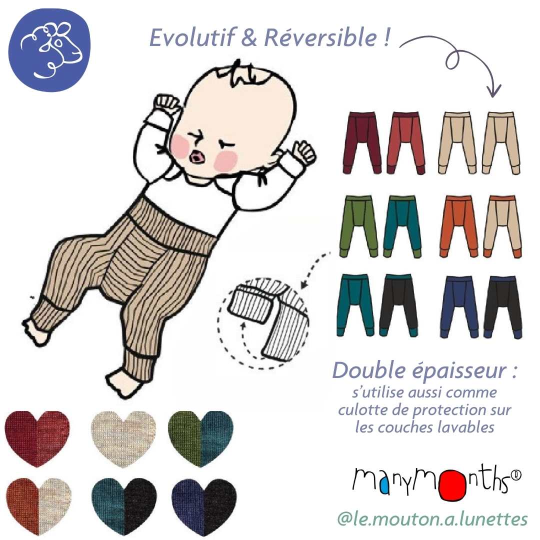 Longies ManyMonths réversibles - pantalon bébé évolutif en laine mérinos – Coloris 2025/26