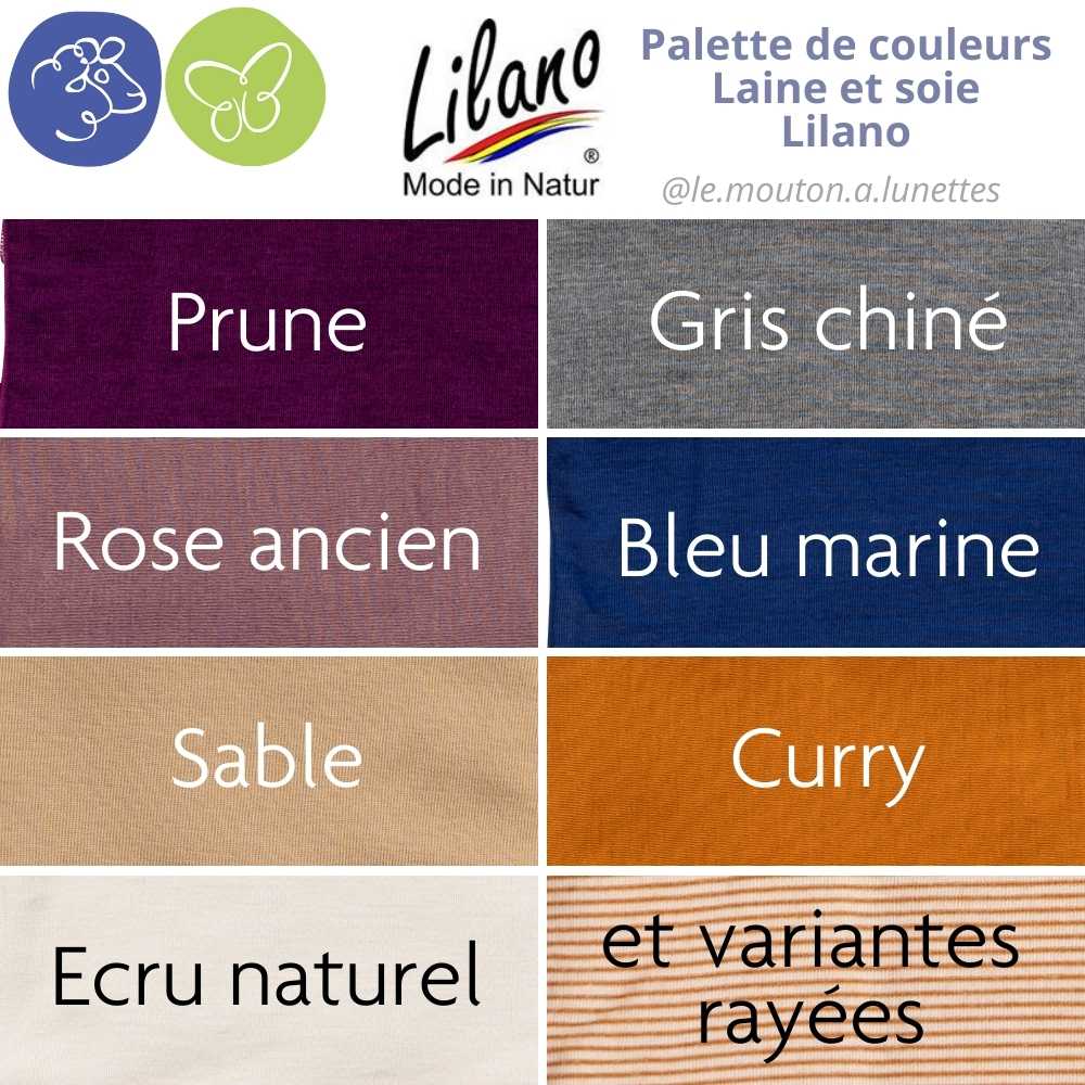 Laine mérinos et soie : cette matière géniale est souple, légère, élastique et régule la température. Elle est douce et ne gratte pas. la qualité de laine/soie Liliano est un petit peu plus épaisse que celle des marques comme Cosilana ou Engel. Cette matière vous évite aussi de nombreuses lessives car antibactérienne et naturellement antiodeurs, une aération à l'air frais suffit la plupart du temps.