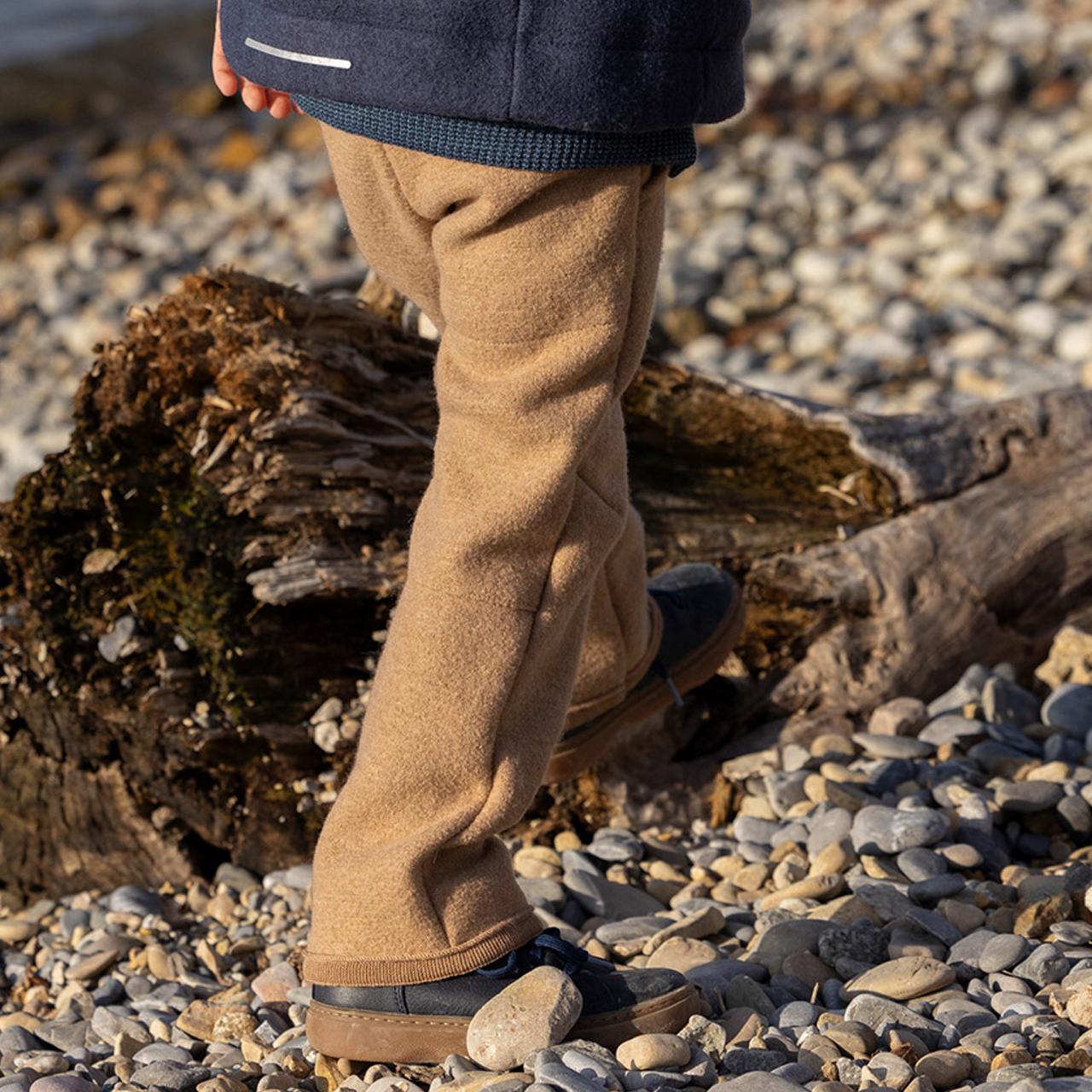 Le pantalon outdoor est fabriqué en laine mérinos bio 420 g/m², elle ne gratte pas. La laine bouillie,grâce à ses propriétés de régulation thermique, permettra à votre enfant de n’avoir ni trop chaud ni froid, même s’il court, bouge et transpire, ce qui la rend particulièrement agréable durant la saison froide.