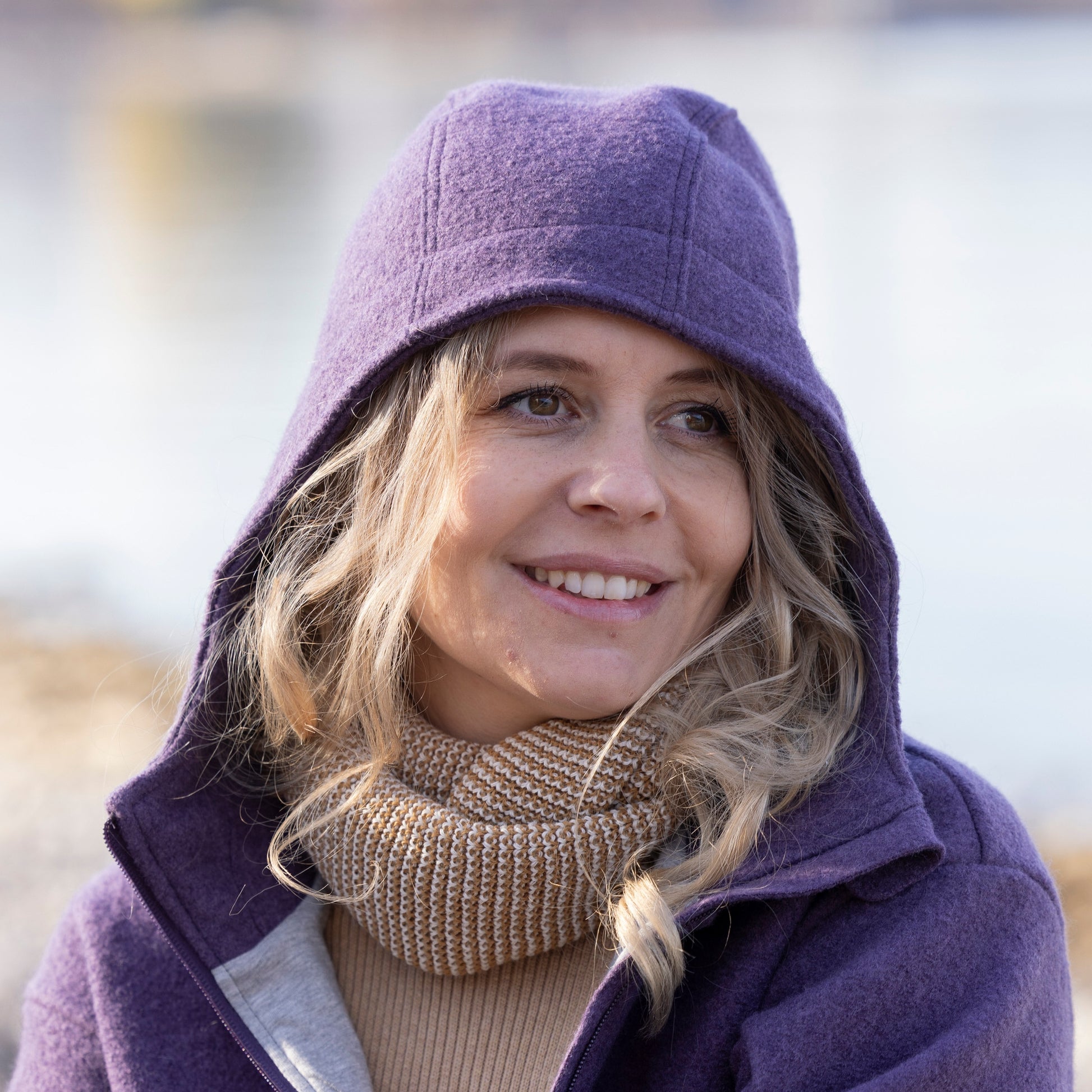 Le snood loop est tricoté dans une grosse maille perlée, en pure laine mérinos, qui lui donne un petit look fait main, beaucoup de moelleux, et une portion de chaleur douce autour du cou grâce la douceur aux milliers de bulles d'air isolantes (densité 540 g/m²).