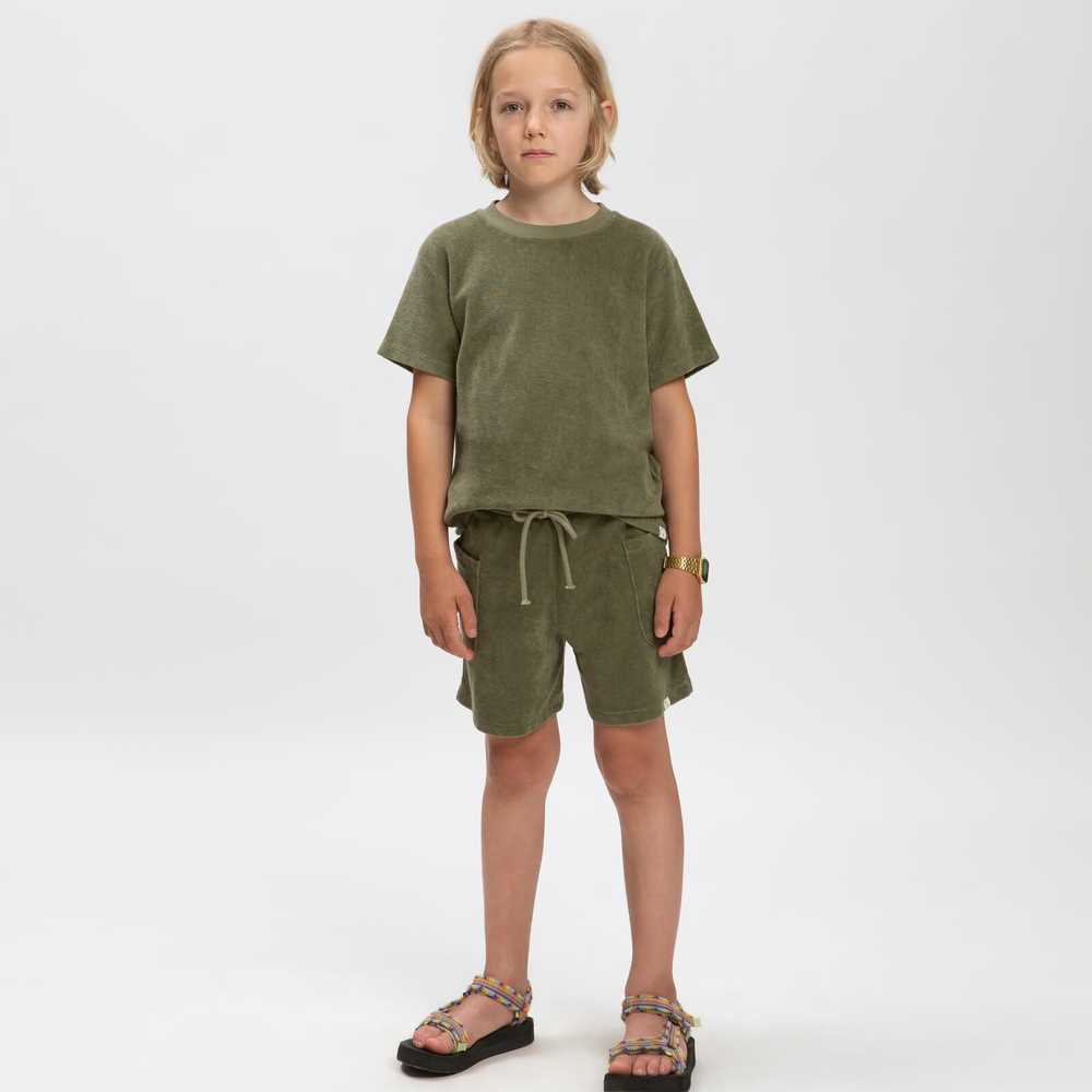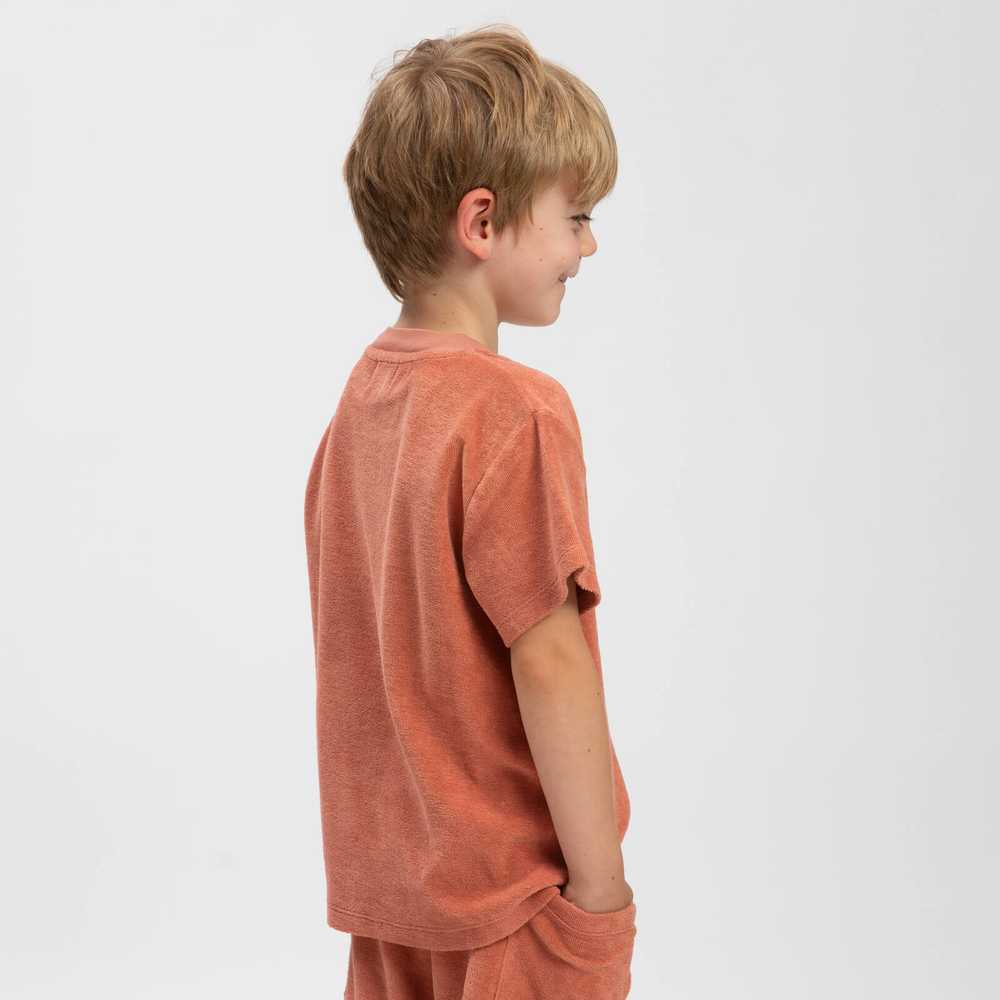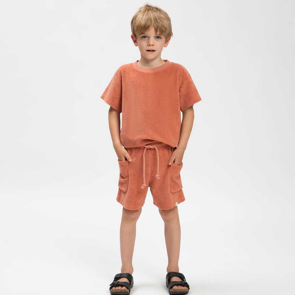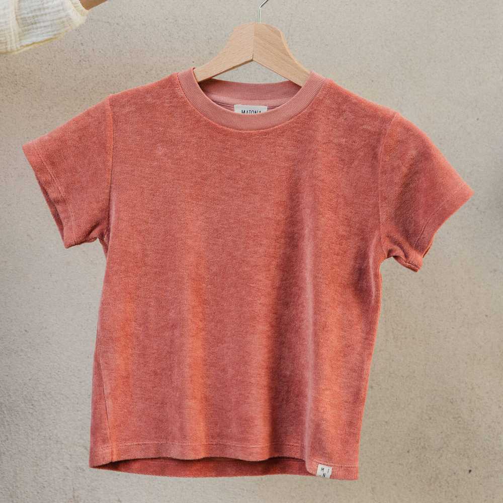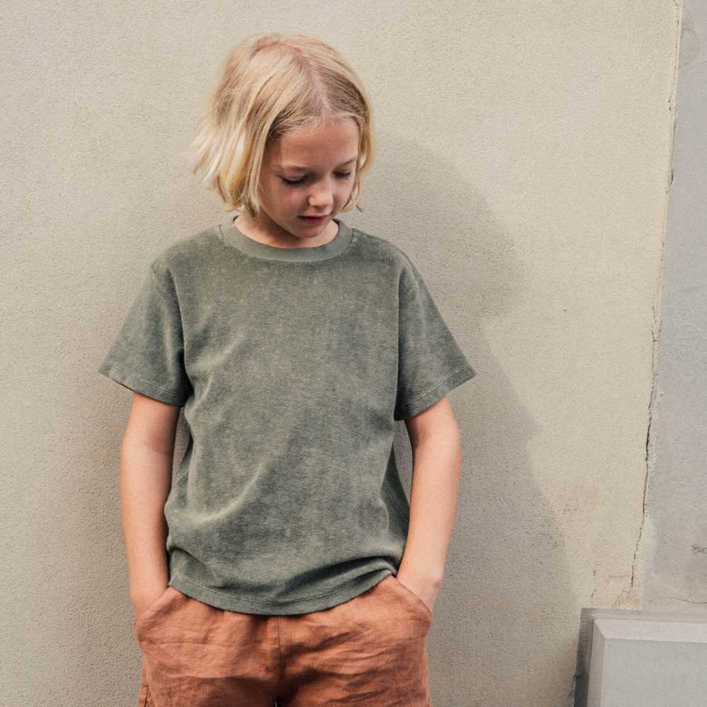 T-shirt en éponge de coton bio pour enfant de la marque autrichienne Matona : un bon basique mixte, durable et confortable, avec manches courtes, à assortir au short en éponge pour un super pyjama d'été !