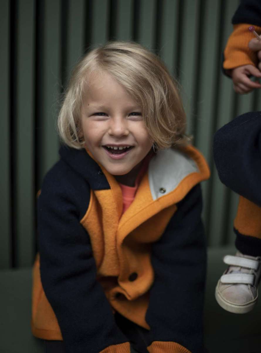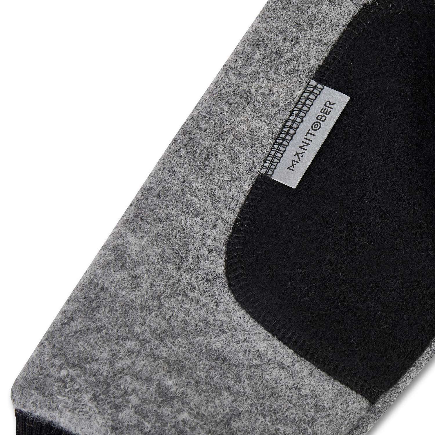 La laine bouillie Manitober est composée à 100% de pure laine, produite dans des conditions respectueuses du bien-être animal, selon les normes GOTS. Le fil est fabriqué par Südwolle et est traité au Portugal. Le matériau est lavé et comprimé mécaniquement, ce qui crée une structure homogène. Avec environ 550 g/m², la laine bouillie Manitober est presque deux fois plus épaisse que celle des autres marques pour enfant. Néanmoins, cela reste un textile élastique et doux, qui assure un climat corporel agréable.