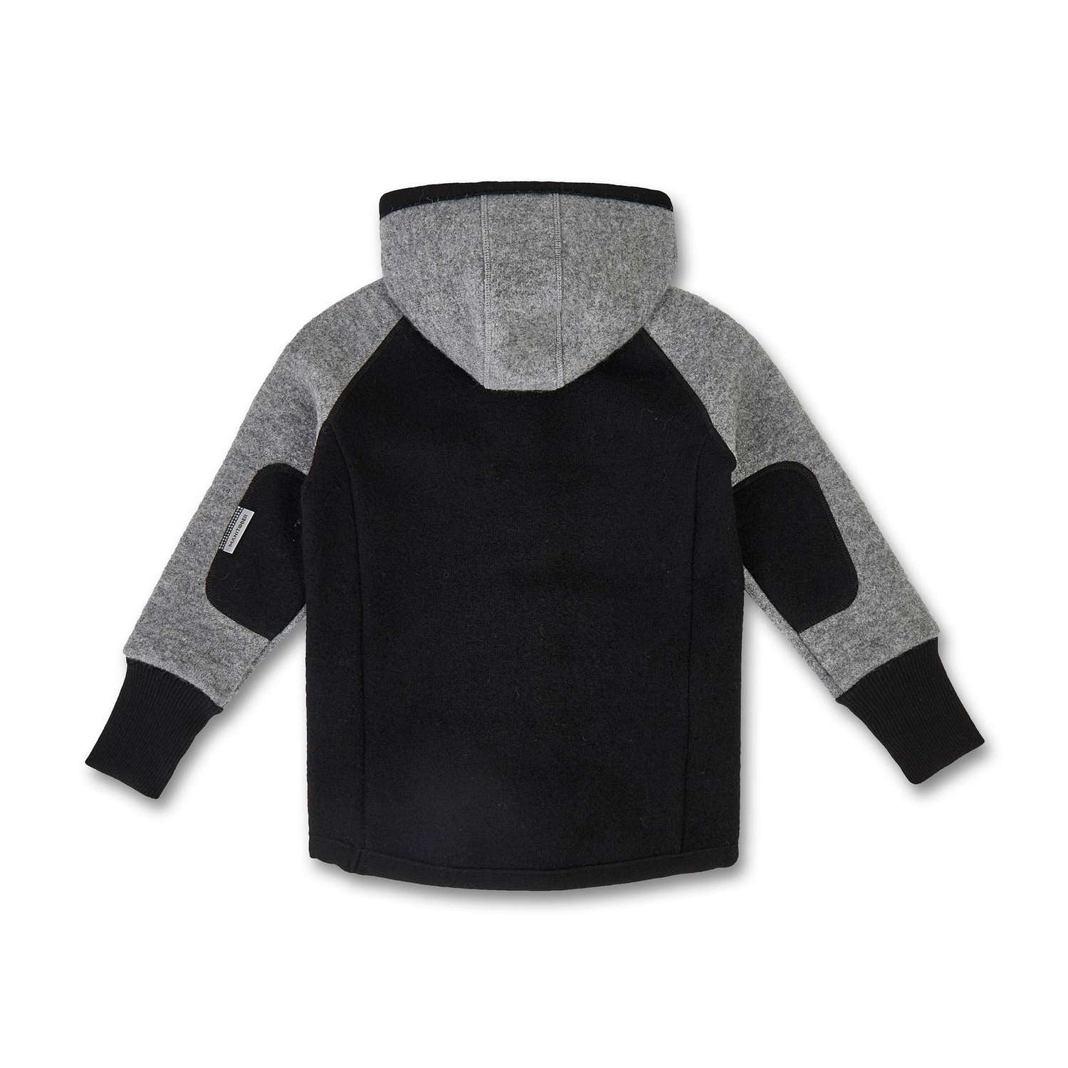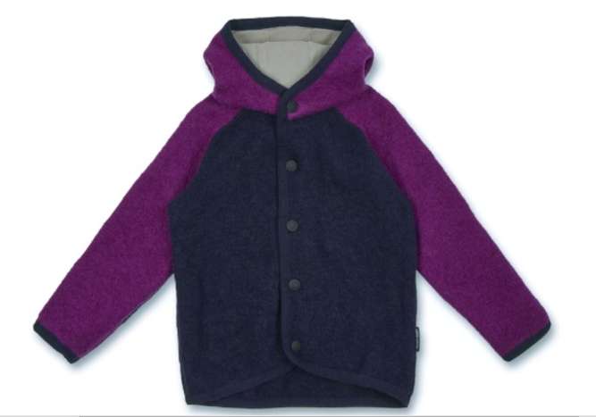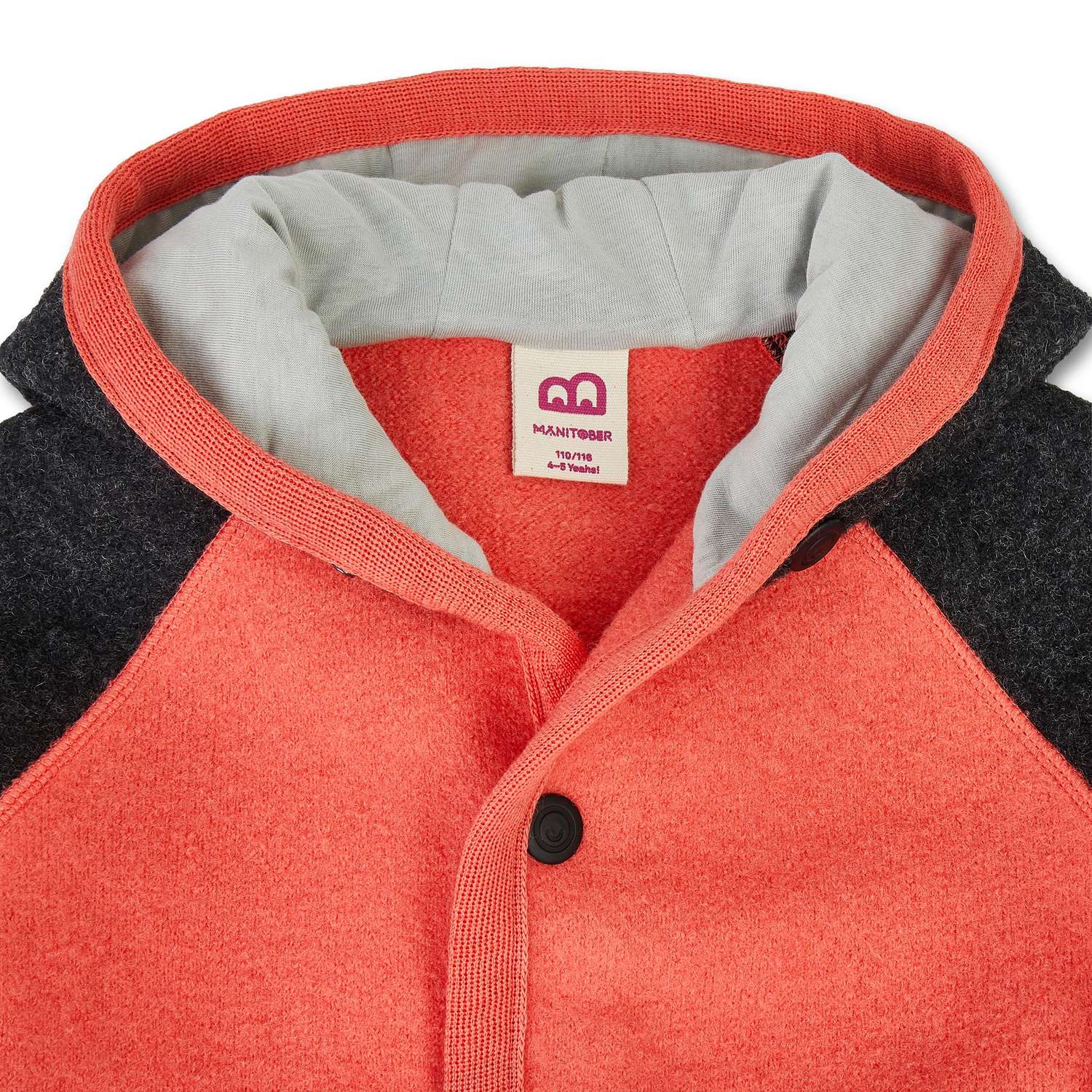 Veste enfant bicolore Manitober en laine bouillie bio avec capuche et boutons pressions