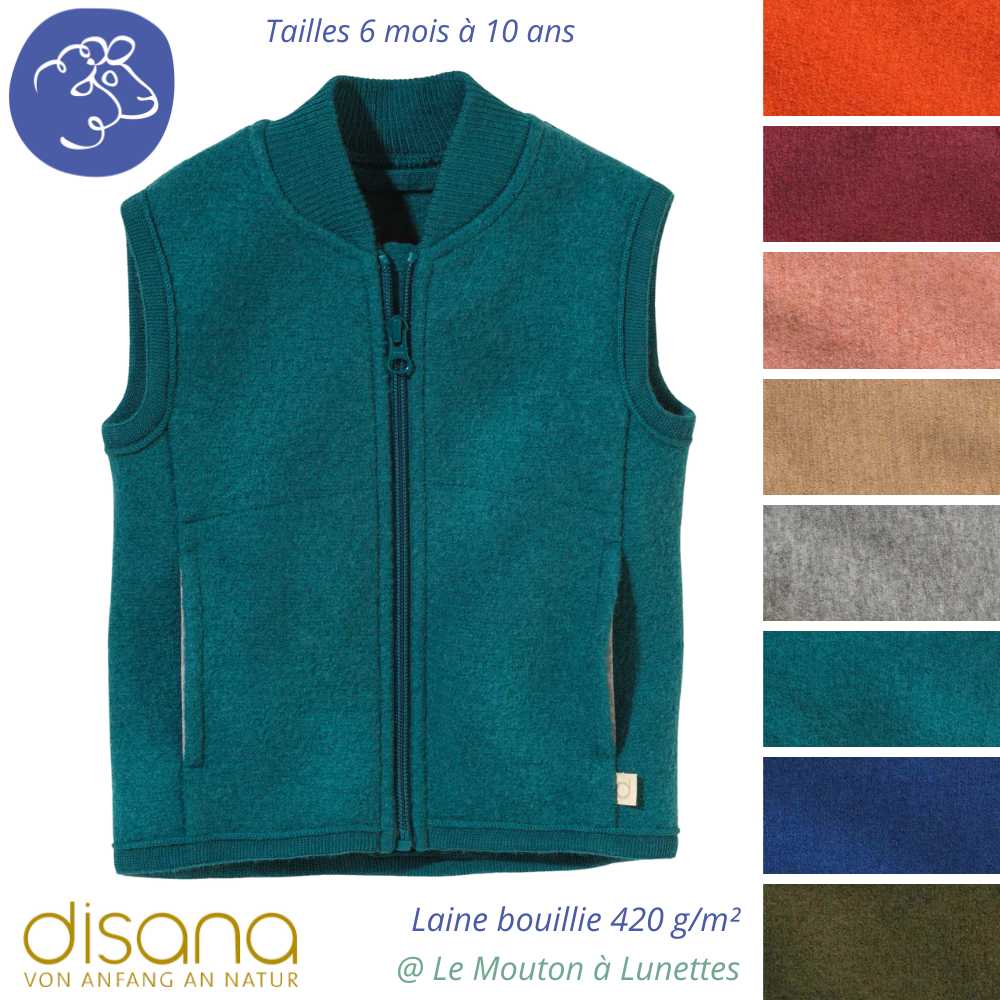 Veste sans manches en laine bouillie bio pour enfant - DISANA