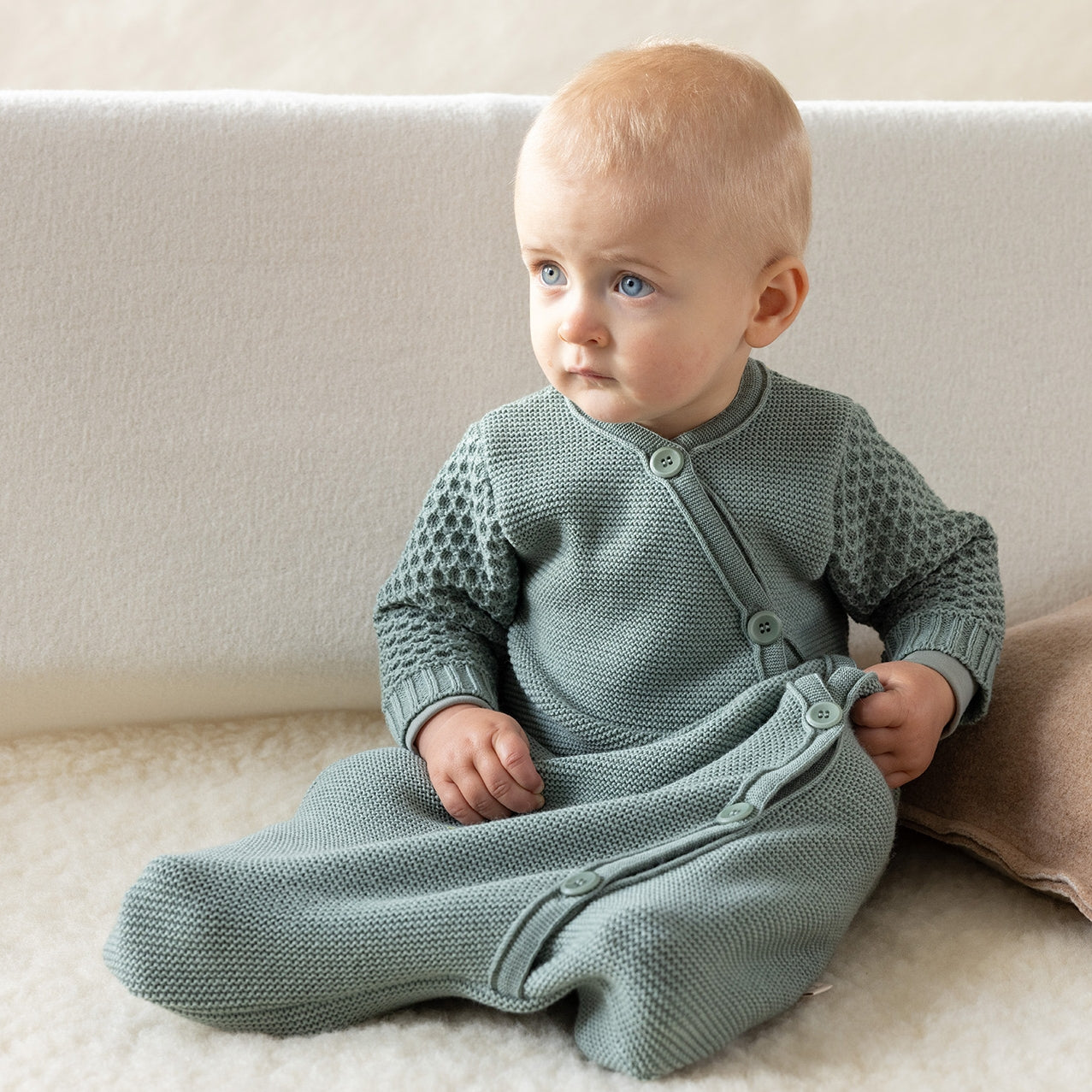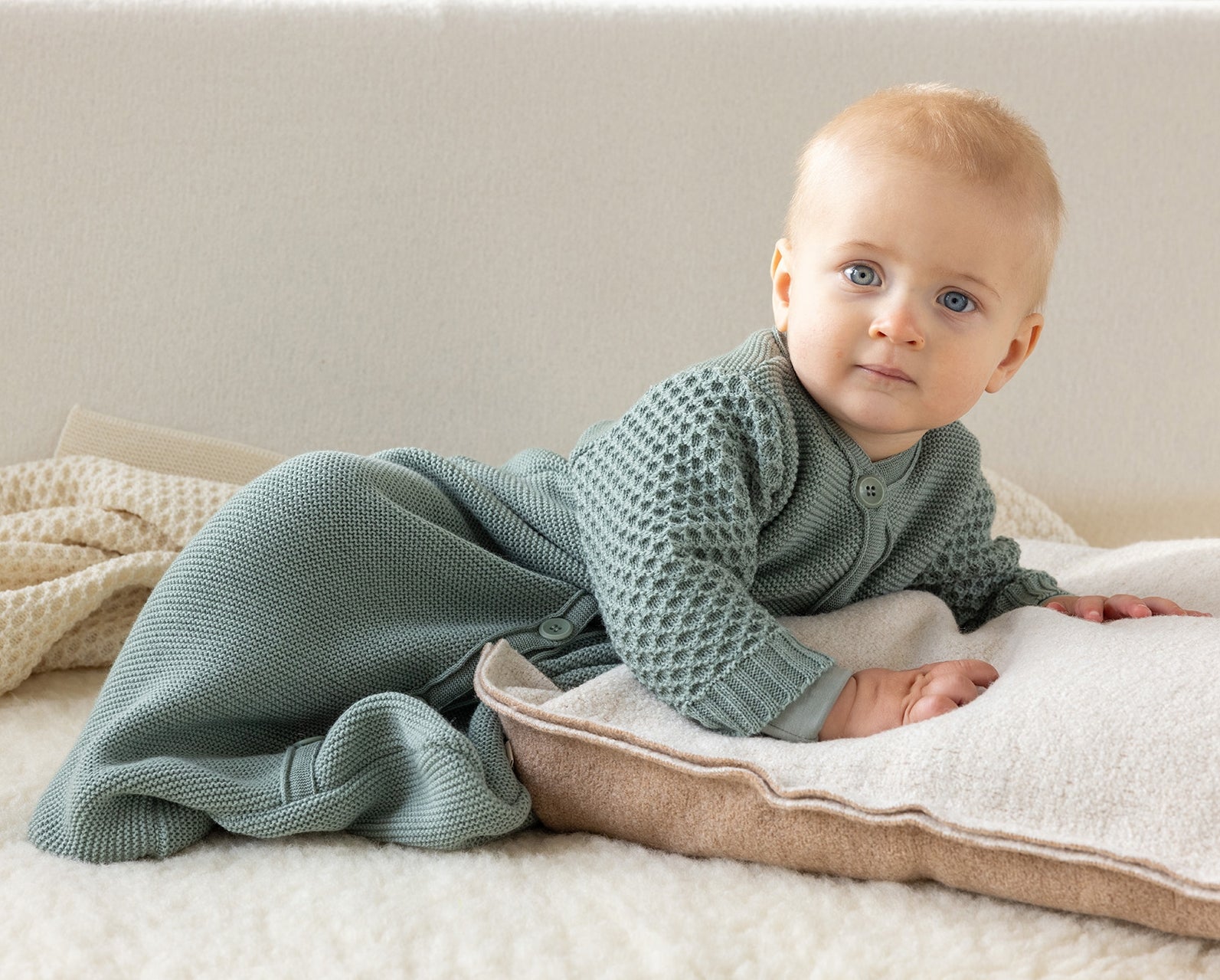 L’élasticité du tricot apporte une sensation de confort et de légèreté et la laine régule naturellement sa température, assurant à bébé un excellent sommeil, sans transpirer.